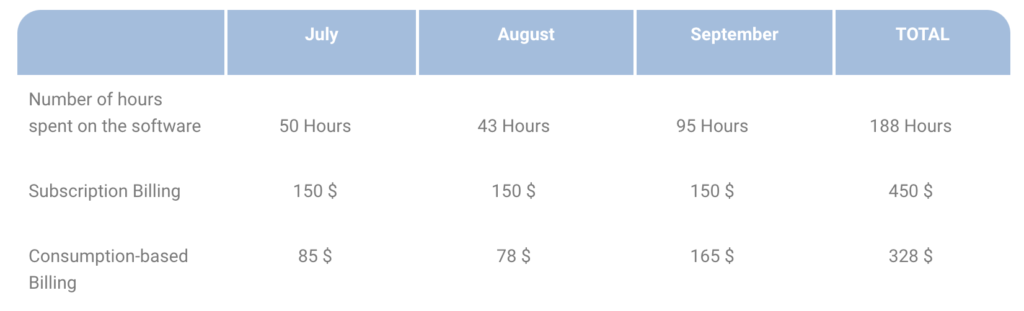 Forbrugsbaseret fakturering er en praktisk løsning på sådanne uregelmæssigheder i forbindelse med brugen af en given tjeneste. Det er fleksibelt og kan tilpasses til alle typer virksomheder. Prissætningen kan være baseret på antallet af brugere af et program, den tid, der bruges på software, eller den mængde data, der forbruges i et lagringssystem.