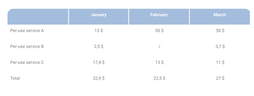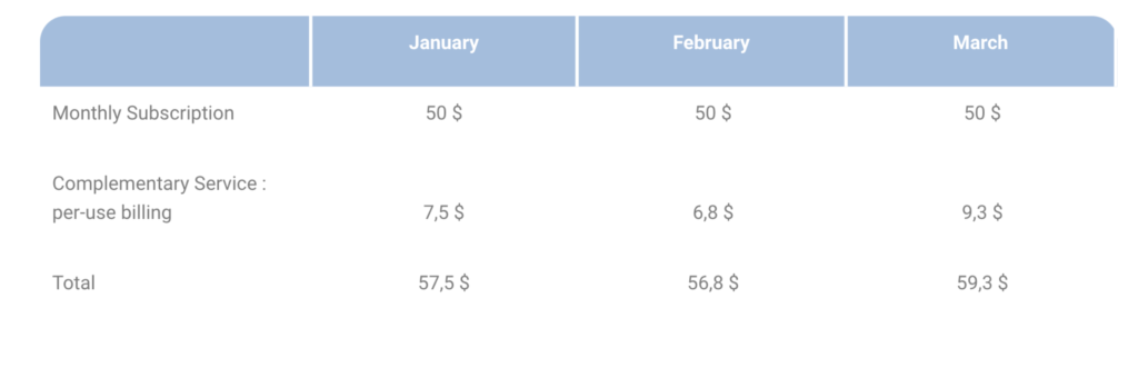 Ved at tilbyde tjenester med betaling pr. brug kan en virksomhed også skabe yderligere indtægter . Sammen med et klassisk abonnement er disse ekstra tjenester, der faktureres efter forbrug, en effektiv løftestang til at udvide det tilbud, som kunderne abonnerer på.